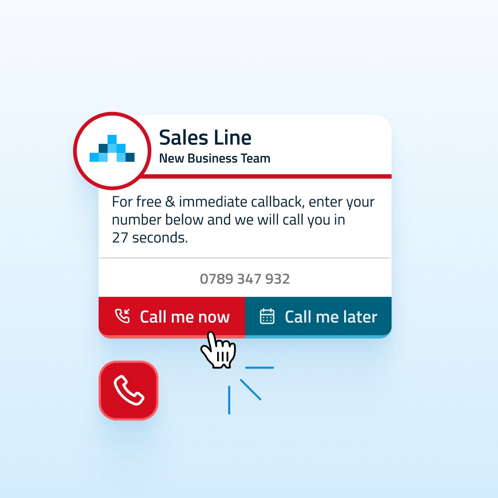 Proactively engage visitors with a customisable callback widget that matches your brand. Convert visitors into inbound calls, increasing your lead volume by up to 24%.